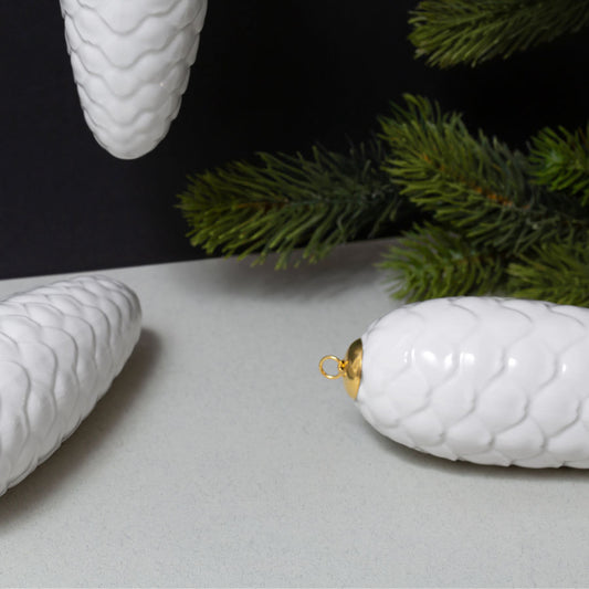 Unsere Kugeln, Zapfen und Kerzenhaltern bringen handgefertigten Glanz in festliche Räume. Jedes Stück entsteht in unserer Berliner Werkstatt und wird sorgfältig von Hand gegossen und glasiert. Kleine Unterschiede in Form, Dekor und Oberfläche zeigen: Hier entsteht keine Massenware – jedes Porzellanstück ist ein einzigartiges Unikat.